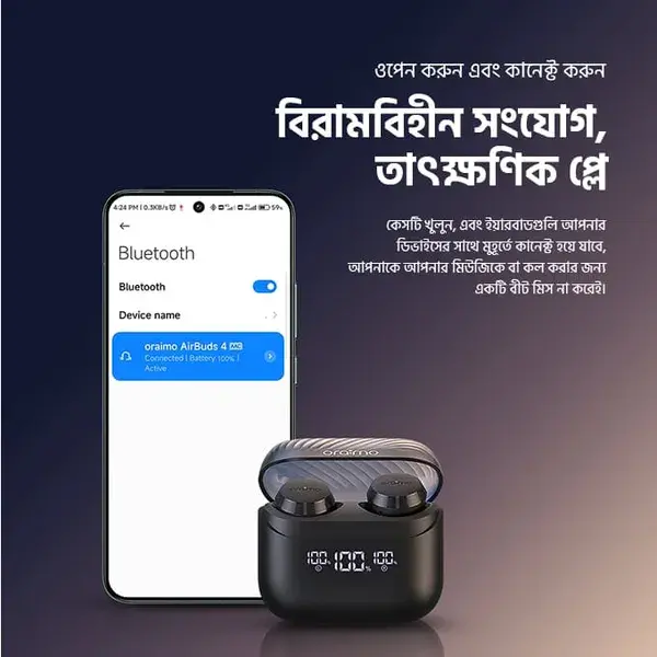 এডভান্সড ৪০mm ড্রাইভারসহ এবং oraimo-এর এক্সক্লুসিভ HavyBass™ প্রযুক্তির বৈশিষ্ট্যযুক্ত, AirBuds 4 অতুলনীয় সাউন্ড এর অভিজ্ঞতা দেয়। সত্যিকারের মিউজিক উৎসাহীদের মনে রেখে নির্মিত, ডিপ এবং শক্তিশালী বেস এ মগ্ন হোন।